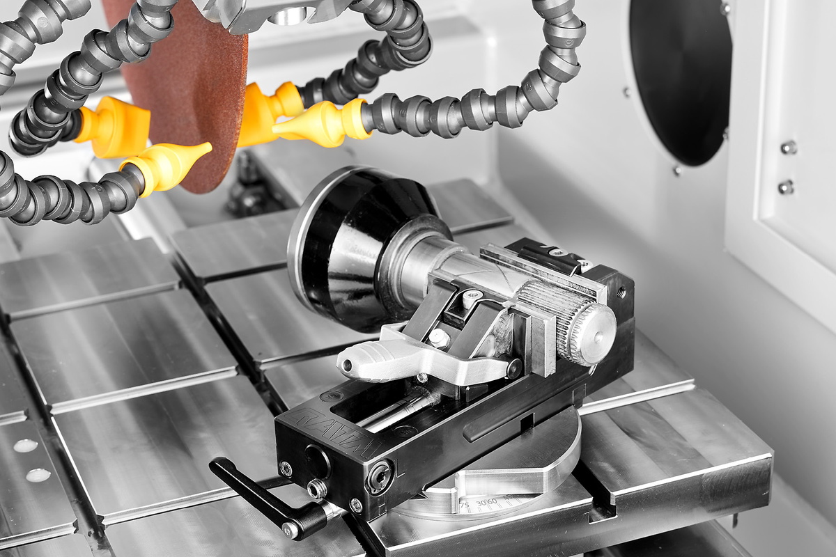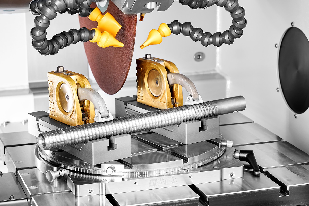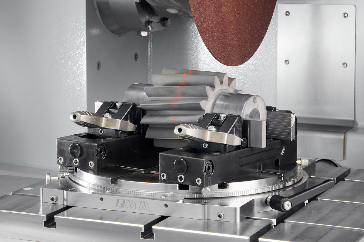 The optional rotation tool features a vertical rotary feed parallel to the wheel with software-controlled angle input.