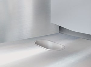 - Constructed from stainless steel with coved corners and seamless design for easy cleaning of surface from perchlorate salts.