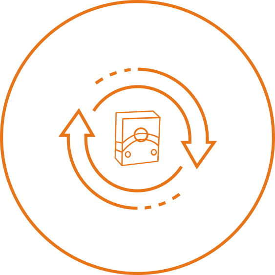 The conveying direction of the pump can be modified quickly and easily which eases the filling and emptying process of different vessels and containers. You do not have to remove the tube or pump head, a press of the button is enough
