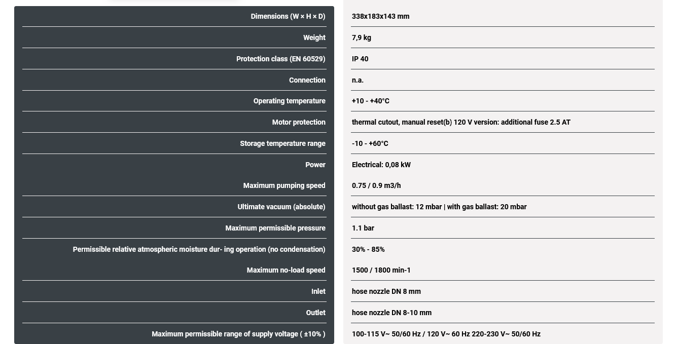 - A Vacuum valve is necessary, if you want to combine this vacuum pump with the Hei-VAP Expert Control / Hei-VAP Ultimate Control rotary evaporators