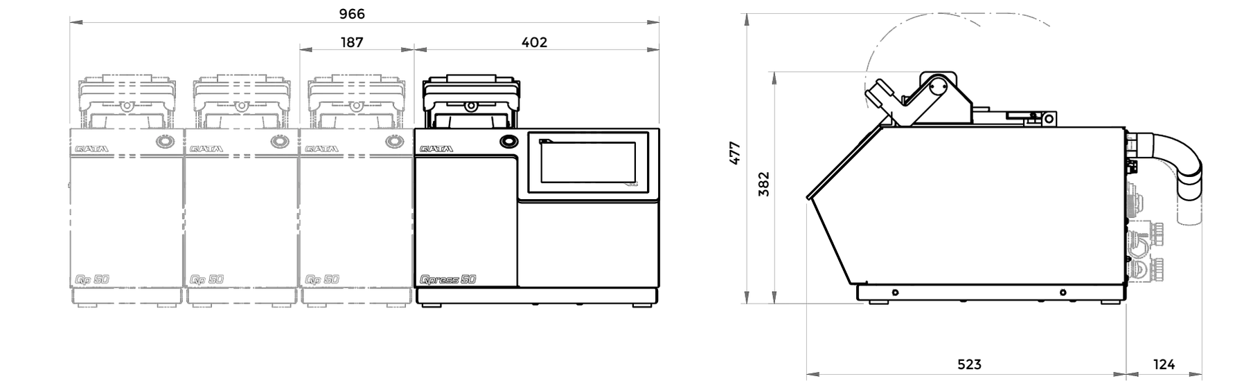 The Qpress 50-2 is the perfect choice for small and medium quantities of mounts. The basic unit includes one pressing unit and can be extended with one additional mounting unit at any time. The units are operated independently and simultaneously.