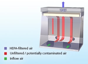 - The solid work surface minimizes transmission of fan vibration to the user’s weighing balance.