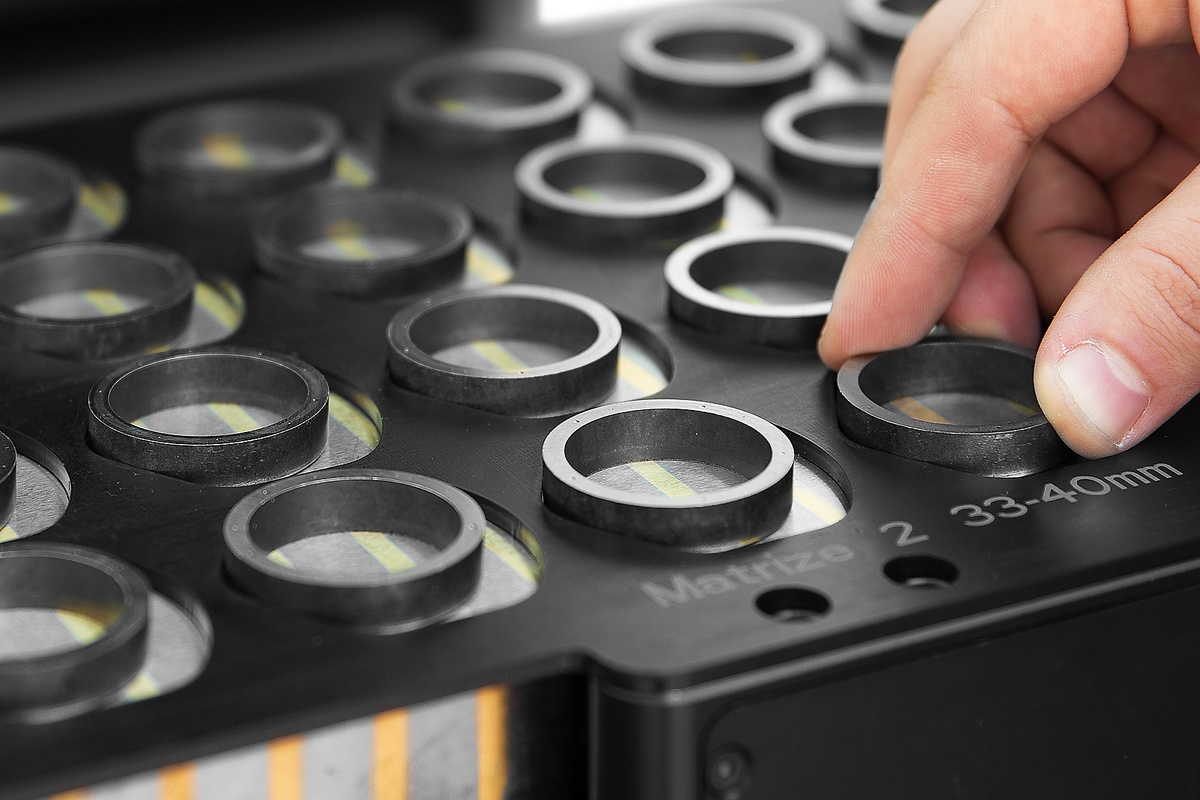An entire range of relevant data, such as test patterns, test methods and user fields can be activated via pre-defined sample magazines. QATM can provide the most suitable clamping setup, matrices and cassette systems for every requirement.