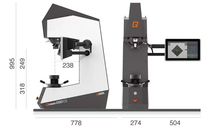 With a test height of up to 250mm and a projection of 238mm, the Qness 200 is ideally suited for small to medium-sized parts.