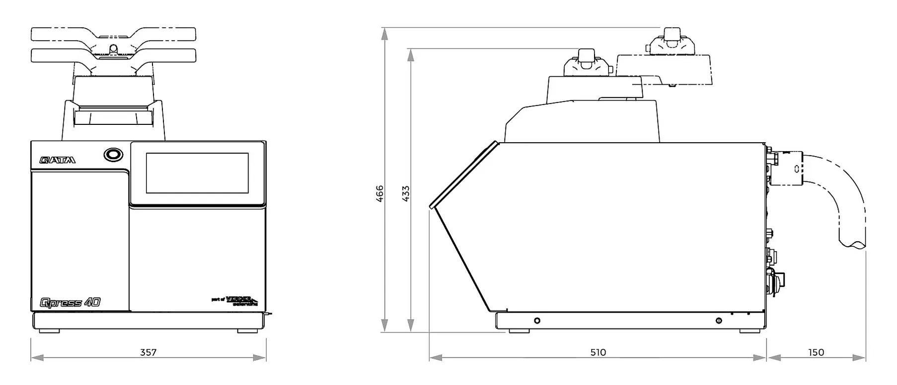 The Qpress 40 is a robust hot mounting press for exceptionally fast mounting processes. Thanks to its powerful heating/cooling technology and speed-optimized temperature control, the mounting time is significantly reduced. The robust bayonet closure, optional simple one-button operation, and clear parameter display on the 7″ industrial touchscreen ensure convenient and intuitive use. The connectable, patented extraction system sets new standards in occupational safety for the user.