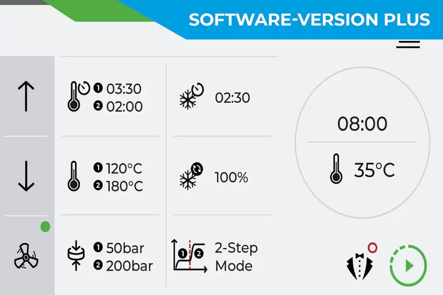 The Plus software variant offers additional features such as a method database, butler function, and automatic control of extraction.The Plus software also includes the 2-step mode for sensitive samples. You can upgrade to Advanced Software Plus at any time.