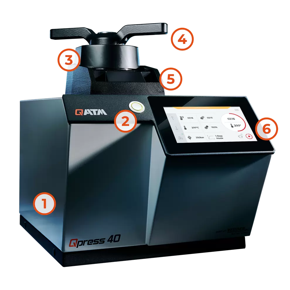 The new Qpress 40 hot mounting press has been developed to meet the increasing demands for precision, efficiency and user-friendliness. The Qpress 40 is characterized by innovative features that not only optimize work processes, but also improve the quality of the results.