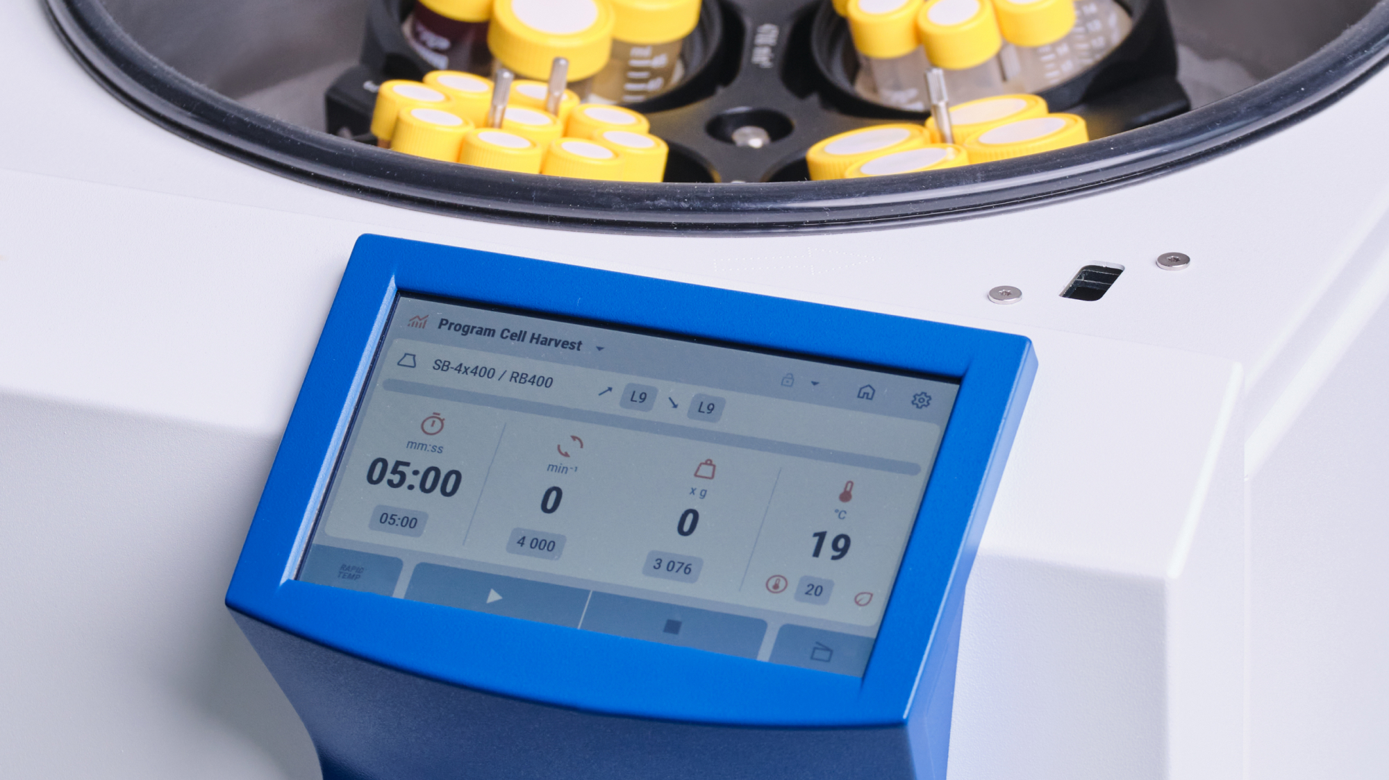 The centrifuge has an extremely large capacity of up to 4 × 400 ml. The wide range of fixed-angle and swing-out rotors, as well as a variety of accessories, ensures it can be used with many different vessel types and for a wide range of applications in daily laboratory work.