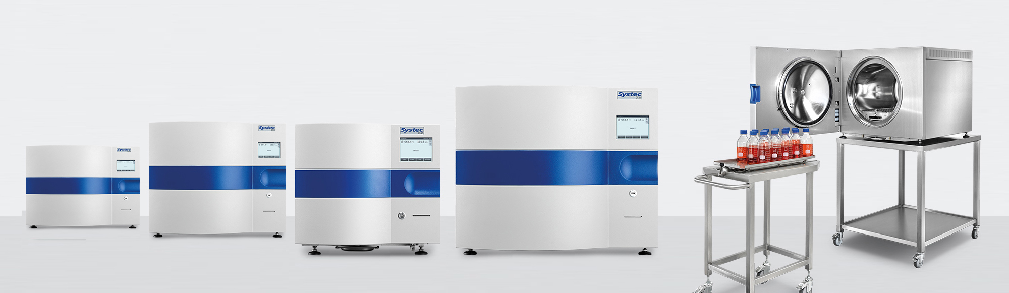 The Systec DX-Series, front-loading horizontal bench-top autoclaves, are available in 7 sizes with 25 to 200 liters of usable space. Compact on the outside, with ideal usable space on the inside. Each size offers optimal loading capacity for most standard medium bottles and Erlenmeyer flasks.