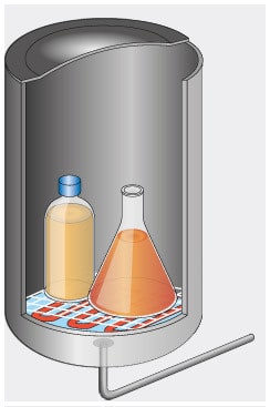The entire autoclave procedure typically includes only a small fraction of time dedicated to actual sterilization – for example, when sterilizing at 121 °C, only about 15 minutes are typically spent on sterilizing. While sterilizing liquids, in particular, phases of heating up the chamber and cooling it down again make up a considerably longer part of the sterilization procedure.