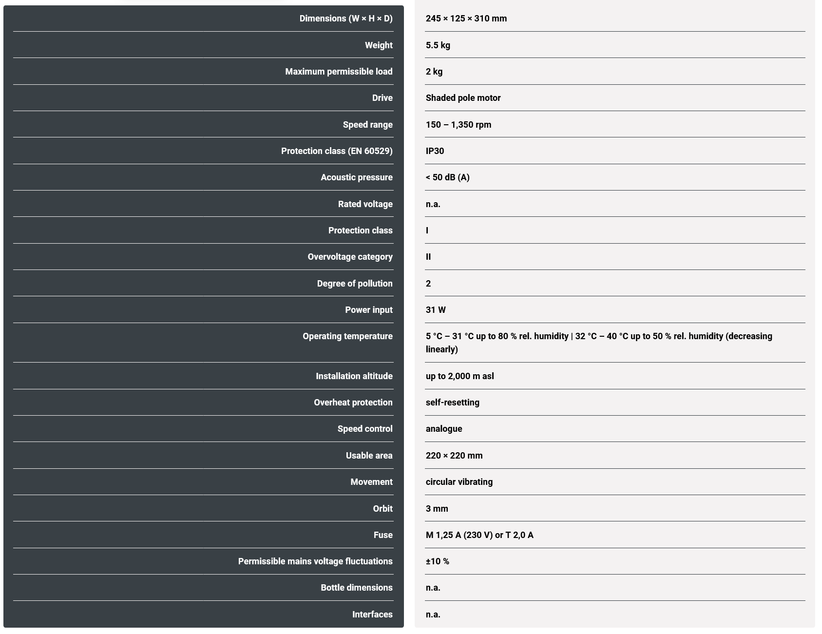 The speed setting of 150-1,350 rpm guarantees a continuously variable adjustment. Use the integrated timer with a runtime of up to 120 minutes for defined processes. The shaker can of course also be used in continuous operation.
